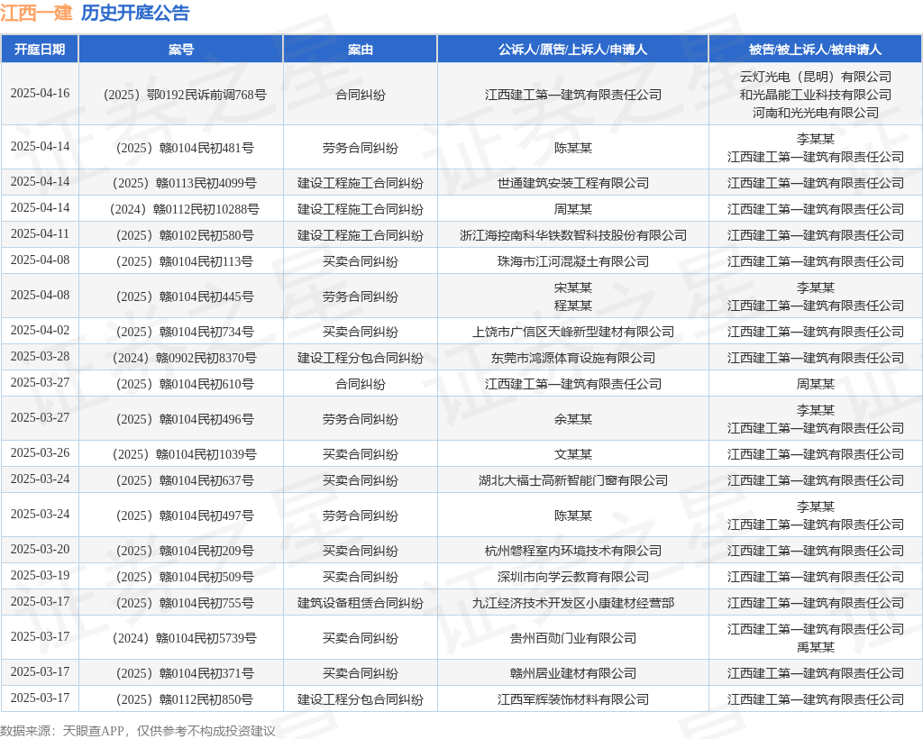 本站消息,根据天眼查APP显示,近日公布了一则江西建工第一建筑有限责任公司作为被告/被上诉人的开庭公告,详细内容如下: